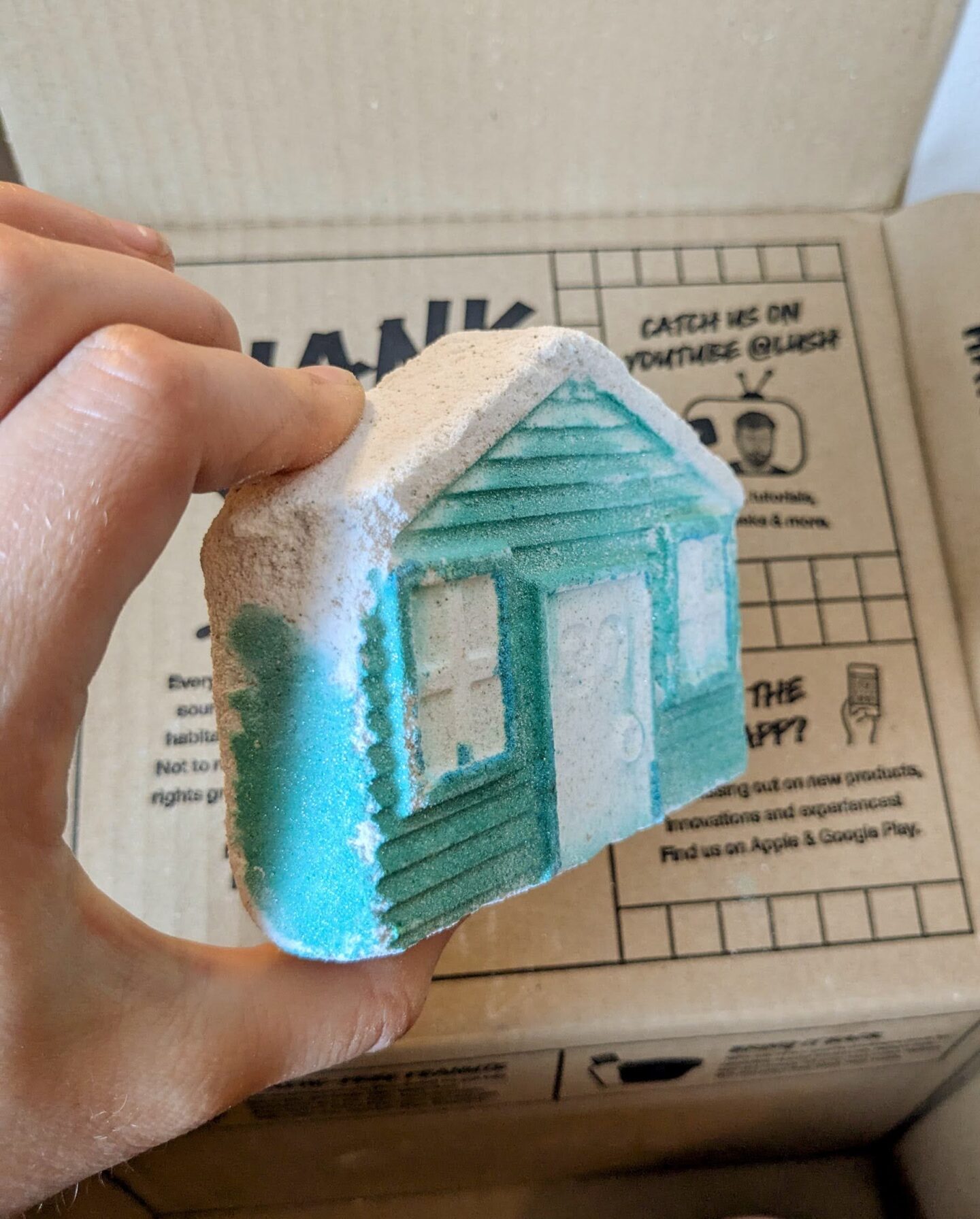 With its bold green body, white roof and cute details like windows and doors, it doesn’t just look great on your bathroom shelf – it connects you to the roots of Lush’s handmade ethos.