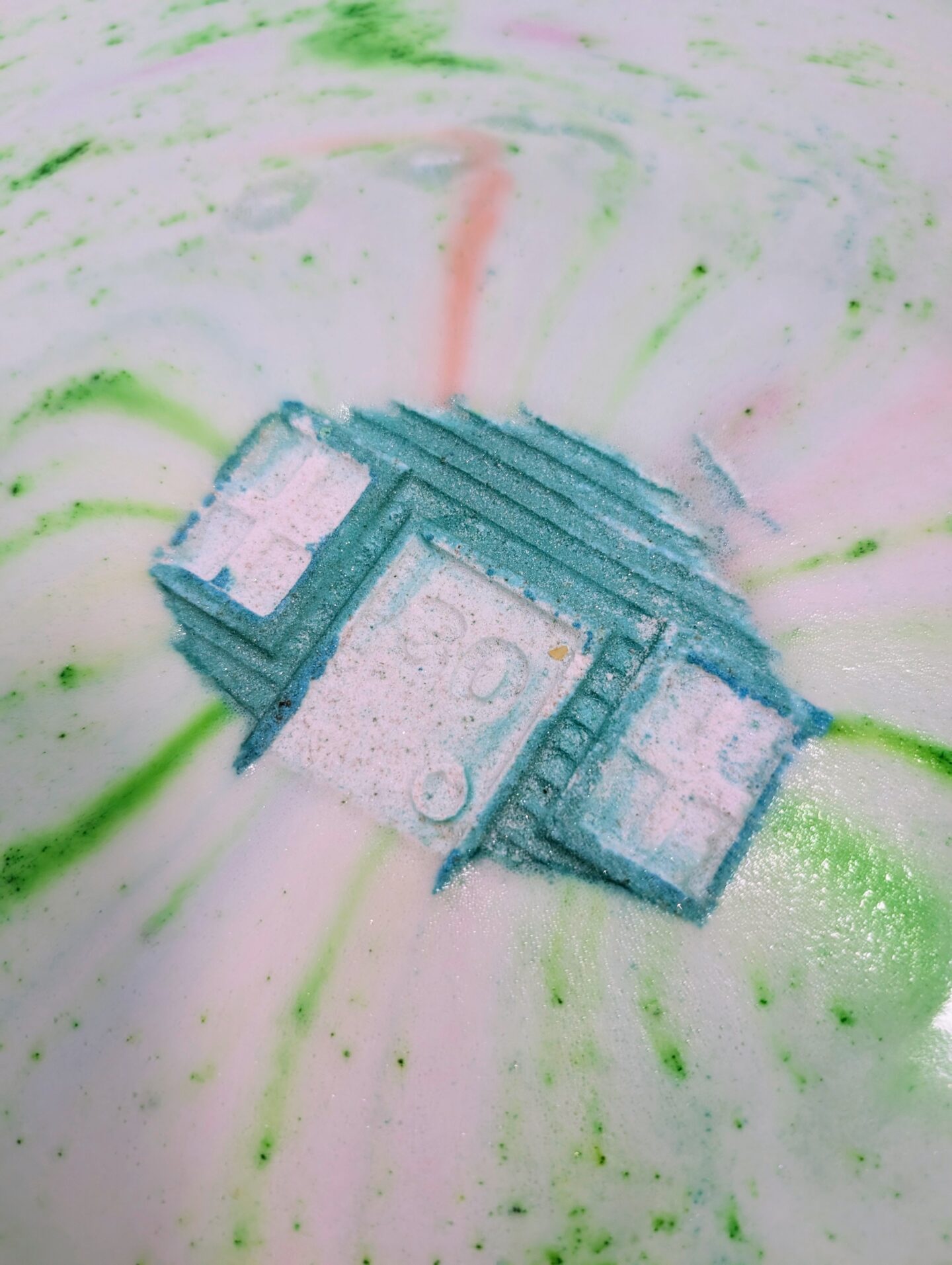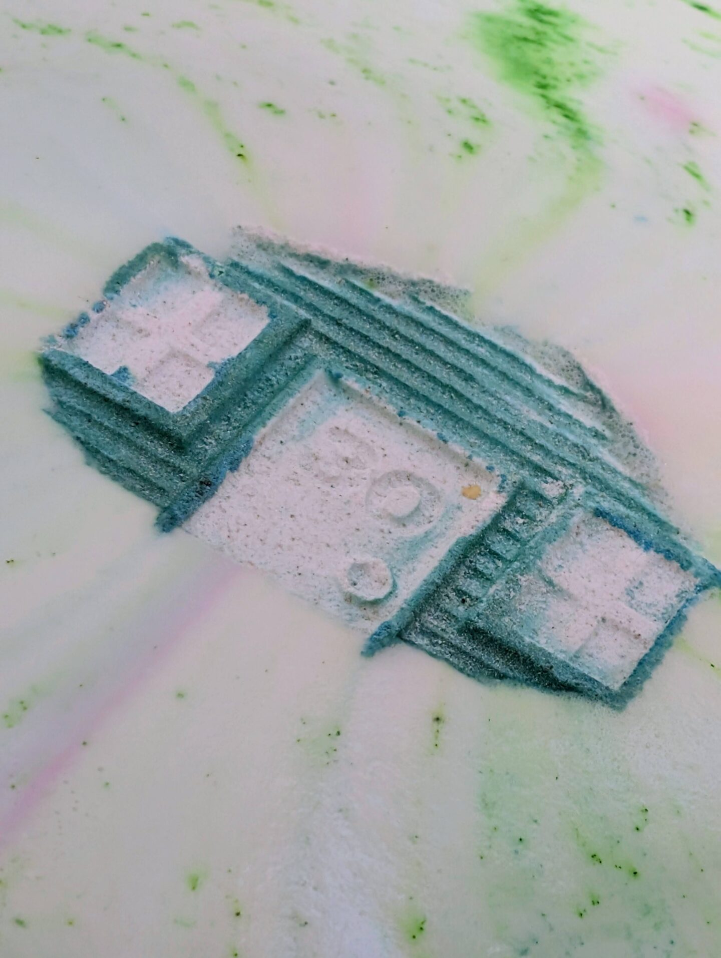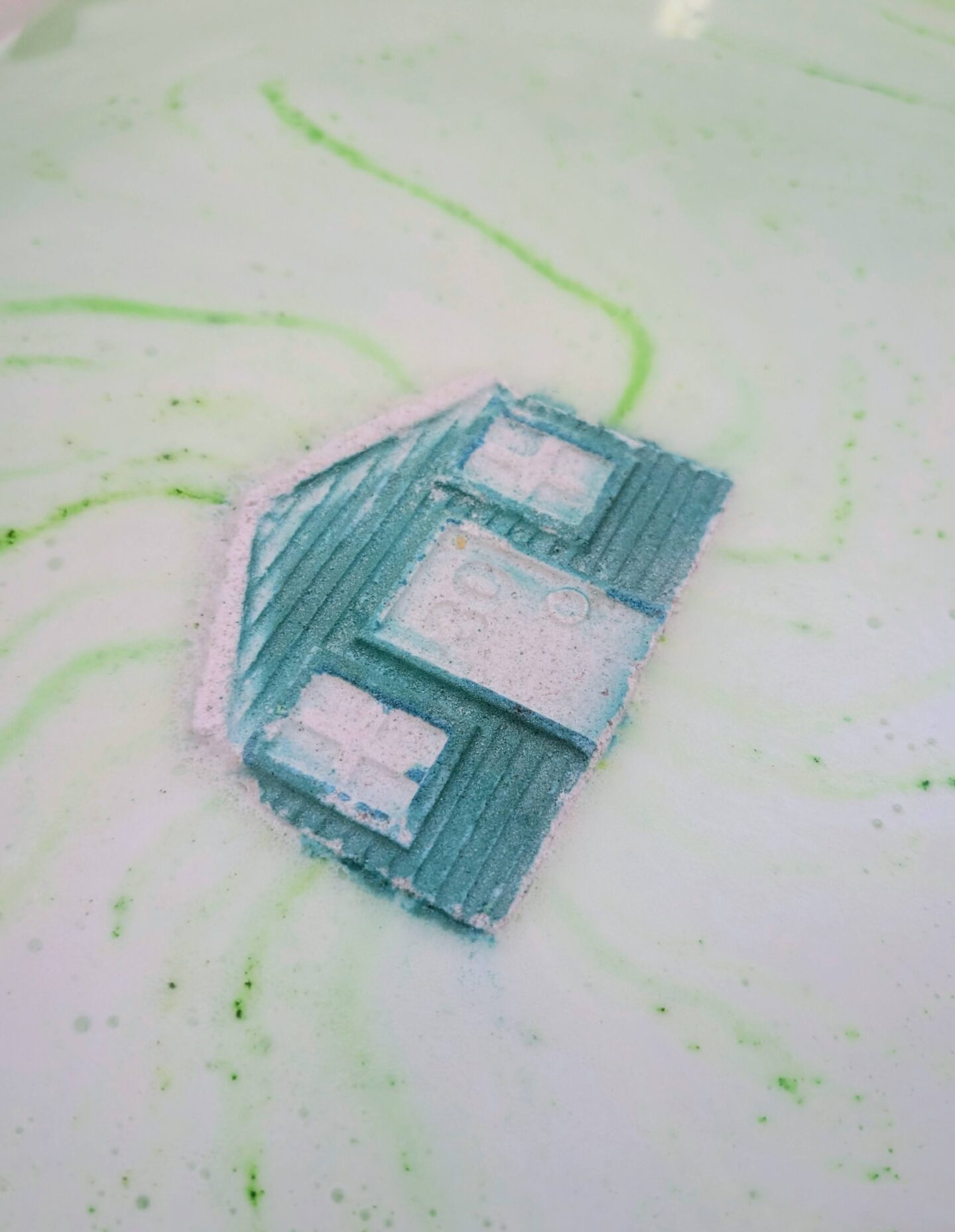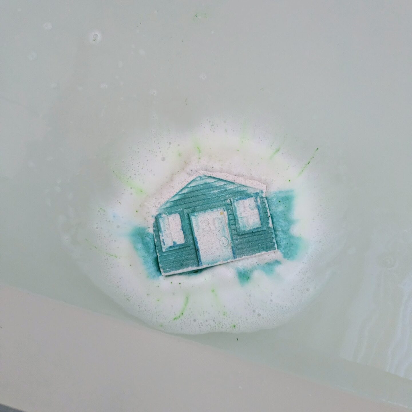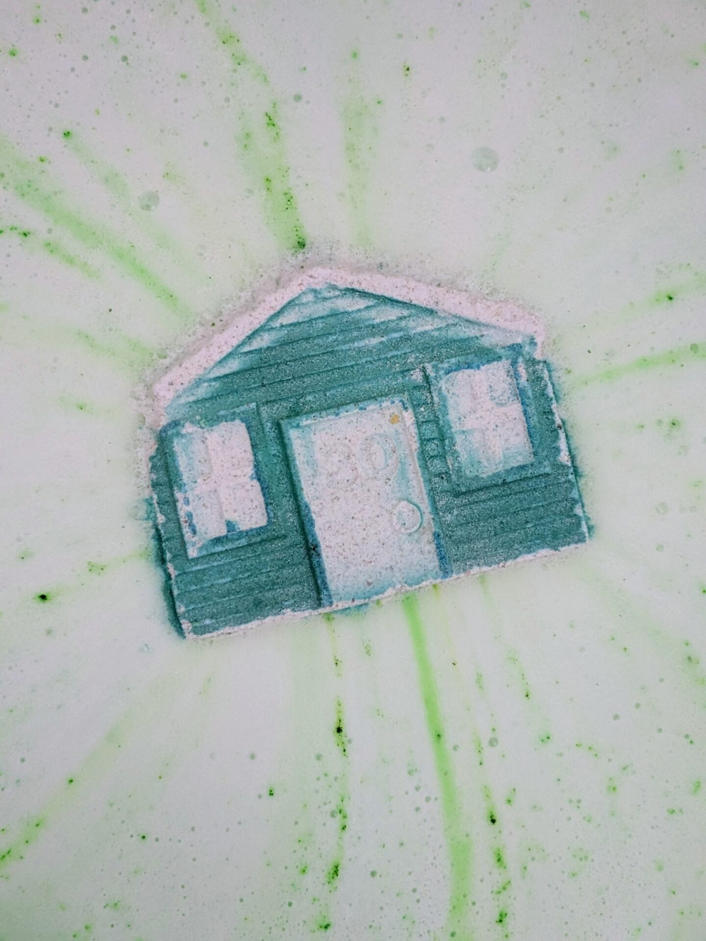 - You float, tired and content, as the bath bomb paints a little green foam art on the water’s surface.