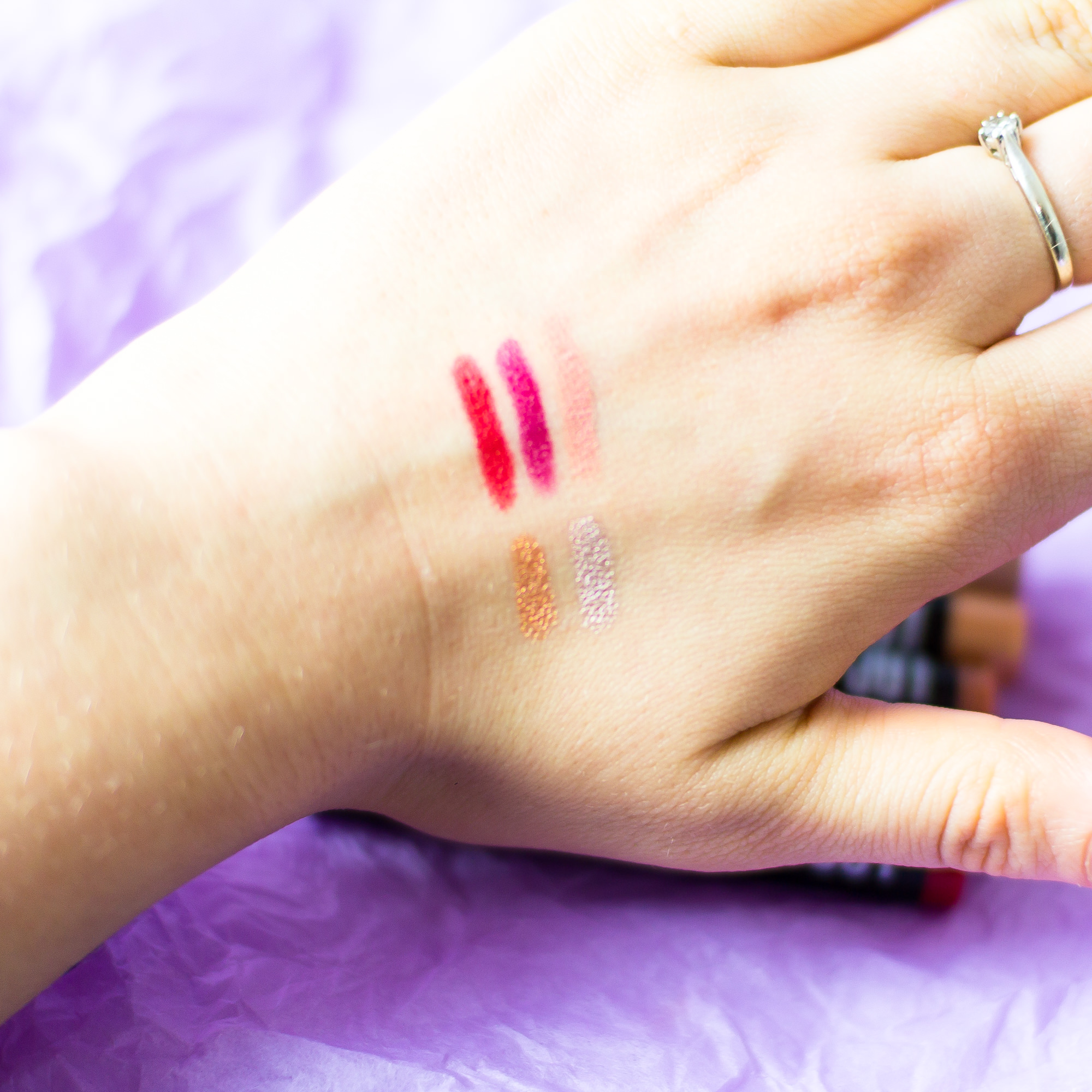 I recently received the entire Birchbox LOC range to trial, the LOC Ultimate Collection, which features two One & Done Shadow Sticks in Perfect Cents and Champagne Problems as well as the LOC Complete Collection for Lips containing three vibrant Matte Lipsticks in Trouble, Uncorked, and Skinny Dip.