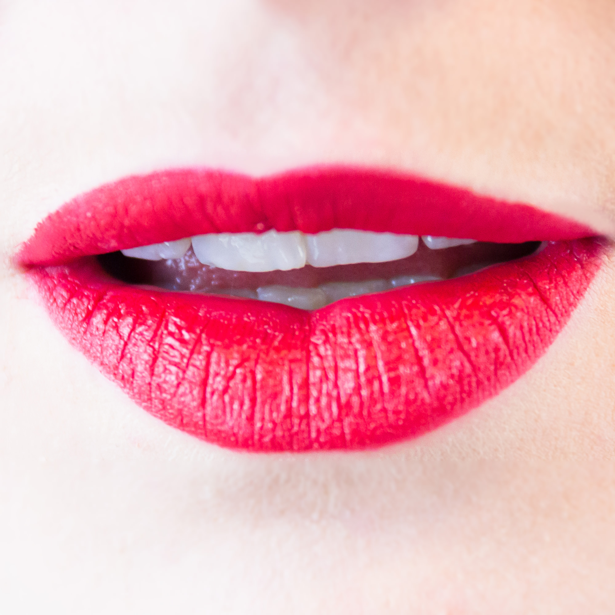 Birchbox LOC Matte Lipstick in shade Trouble. I loved this blue toned, cool red. Very nice feeling on the lips but be careful as it does stain the skin.