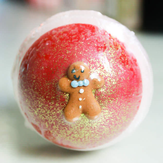 My bath didn’t end up rainbow shades but it was very milky and smelt lovely. The bath bomb was a little oily and the glitter from the top of the bath bomb did get everywhere but other than that I loved it. My sisters bath blasters were the cute mushroom Flying High Blaster 160g and the Christmas Gingerbread man You Can’t Catch Me Bath Bomb 160gm which I can now only find available in the Bomb Cosmetics Bake Me Away Gift Pack.