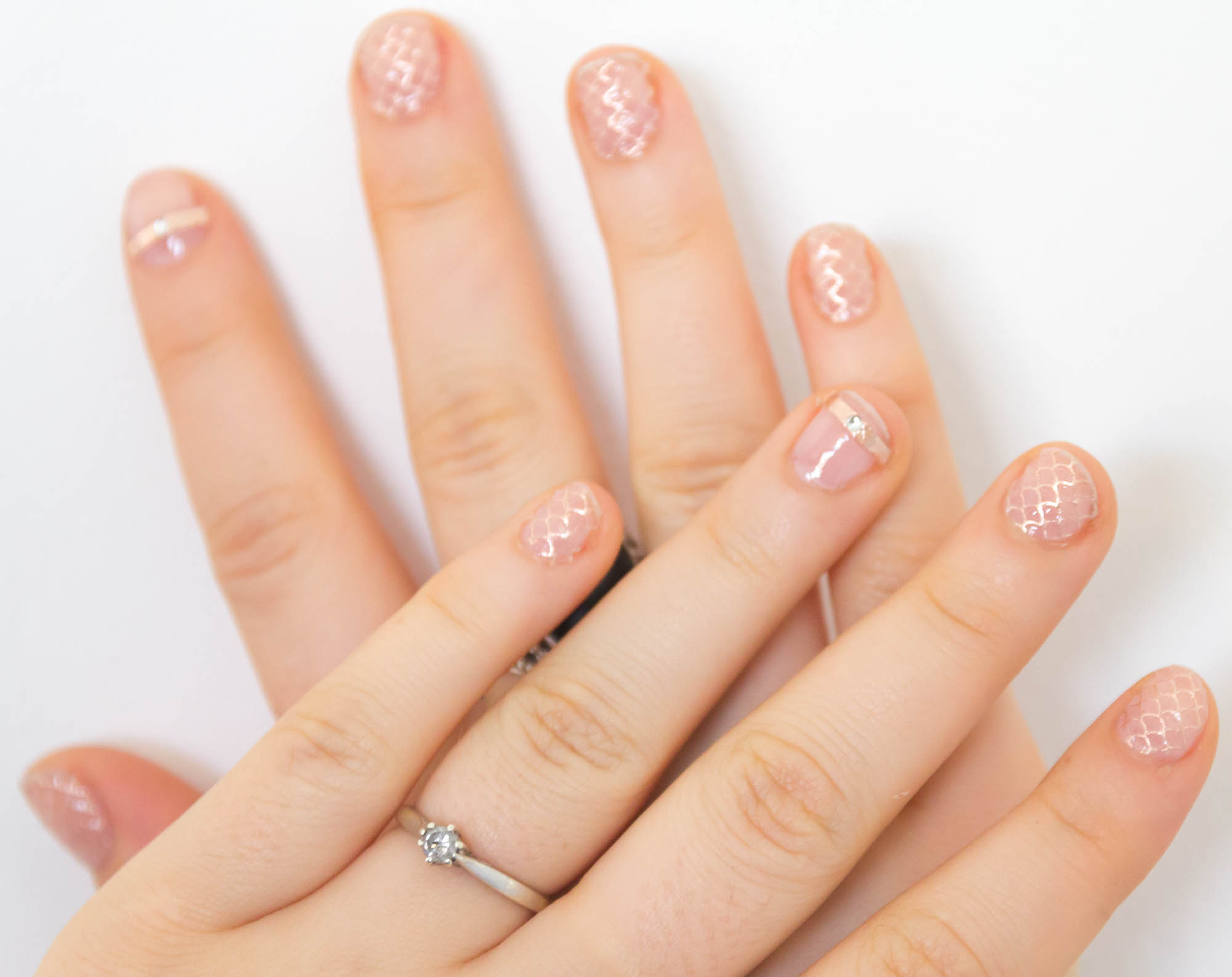 The essence cosmetics jewelry nail stickers look so delicate and pretty on my short nails, and I love the diamonte band to use as an accent nail.