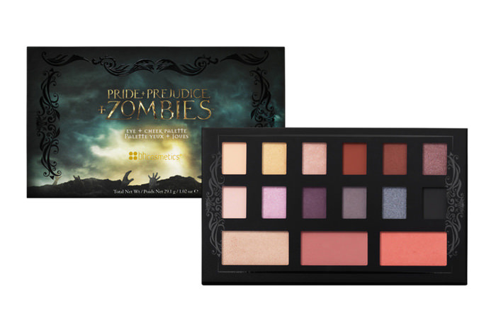 Surrender to romance and star in your own love story with our Pride and Prejudice and Zombies™ Eye & Cheek Palette, a killer collection of 12 eyeshadows plus blush and highlighter that will bring your look to life. Celebrating Sony Pictures’ cinematic escapade of manners and mayhem, marriage and martial arts, it was inspired by the classic tale of tangled relationships in British society. Shades range from eerie ivory to intense ebony, in mattes, satins, and shimmers that are drop-dead gorgeous!