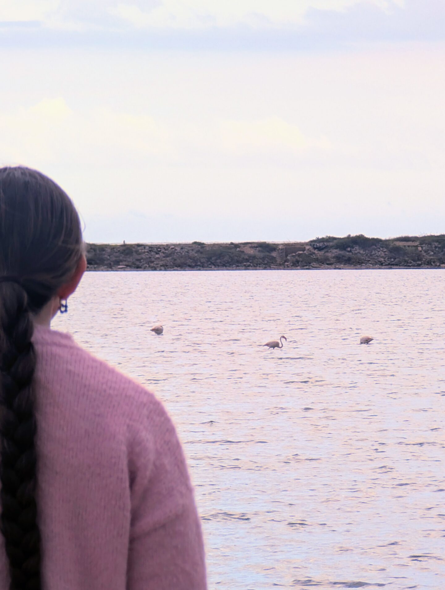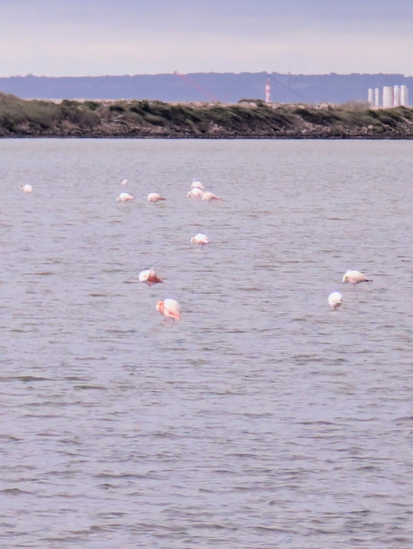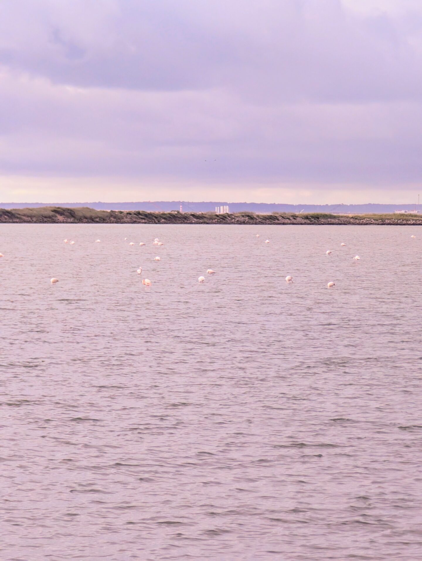 As we approached Salin de Gruissan, the scenery began to shift dramatically. Dusty roads gave way to wide, open marshland that shimmered in the afternoon sun. And then – suddenly – pink. The salt flats stretched out before us in broad, shallow pools, their colours ranging from soft rose to a vivid coral, depending on the light and the angle. It was like stepping into a pastel dream.