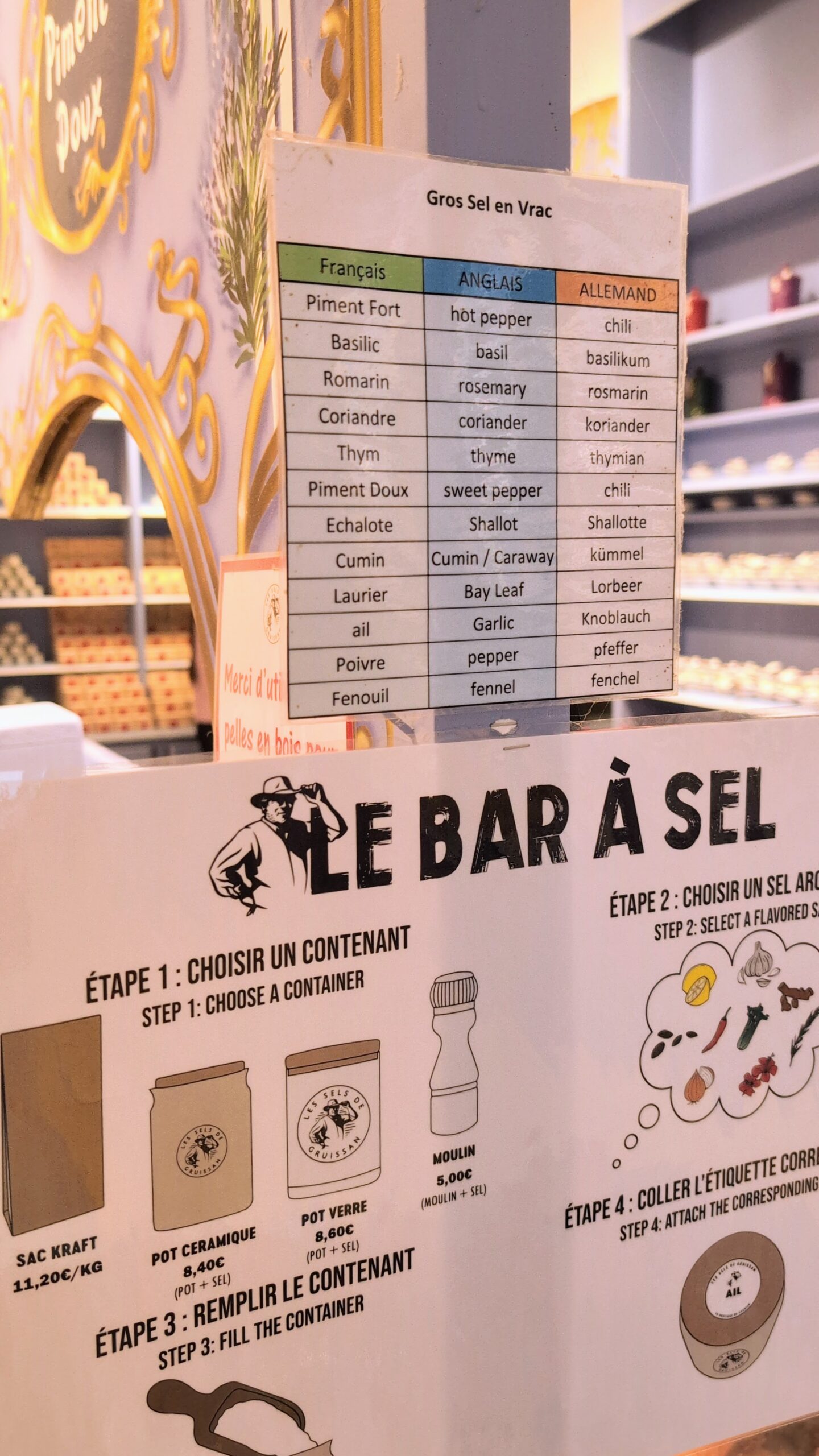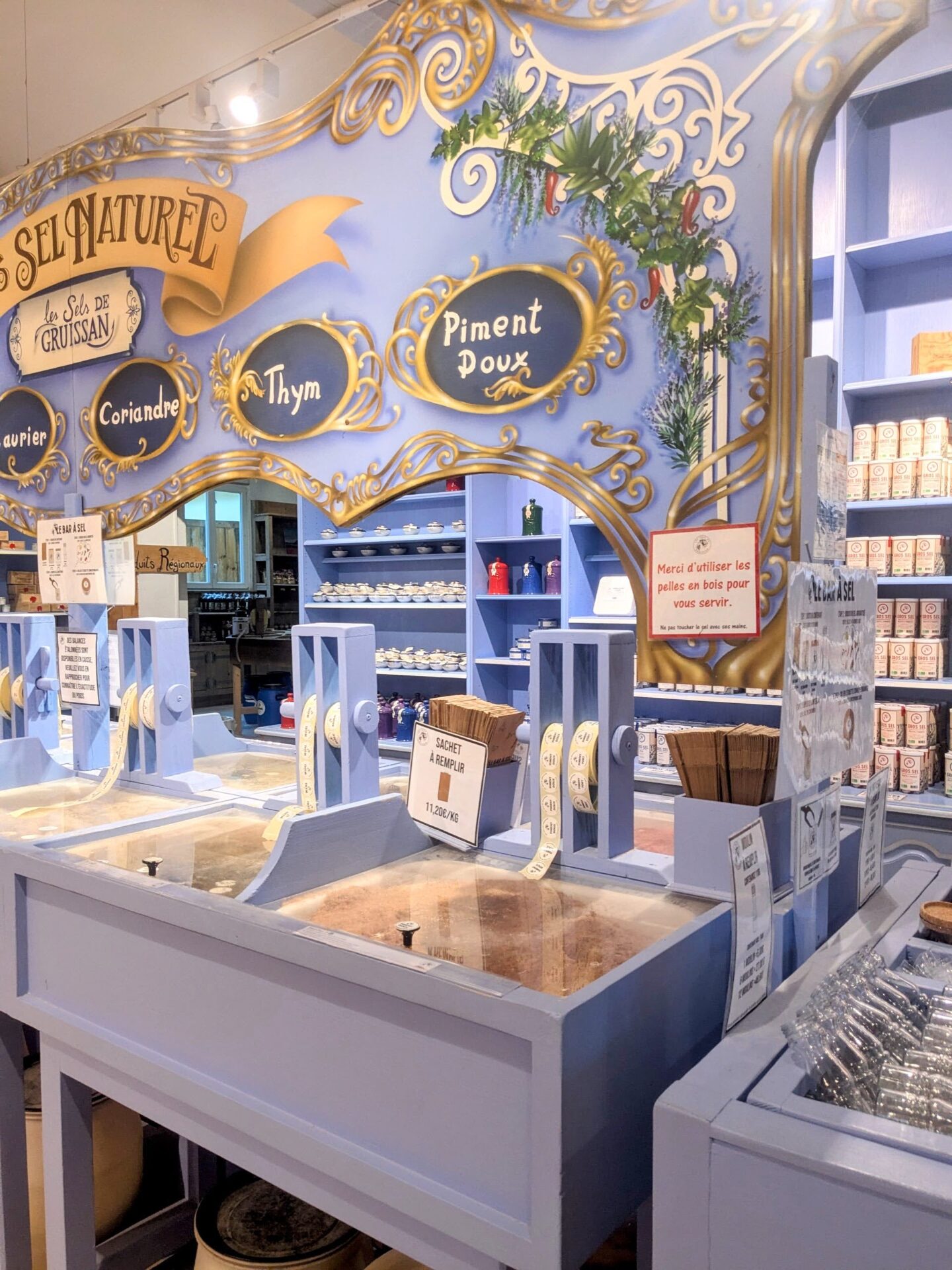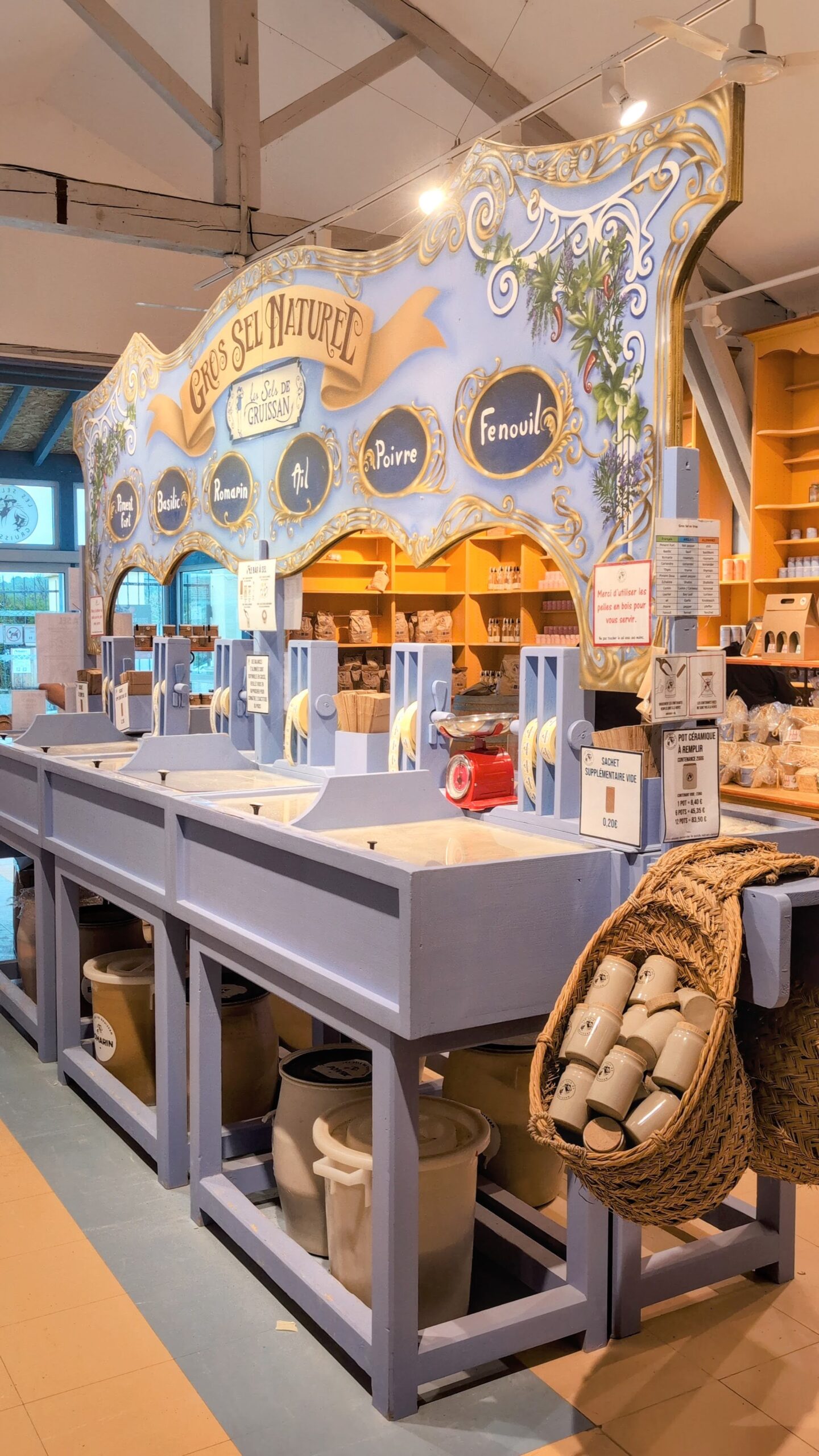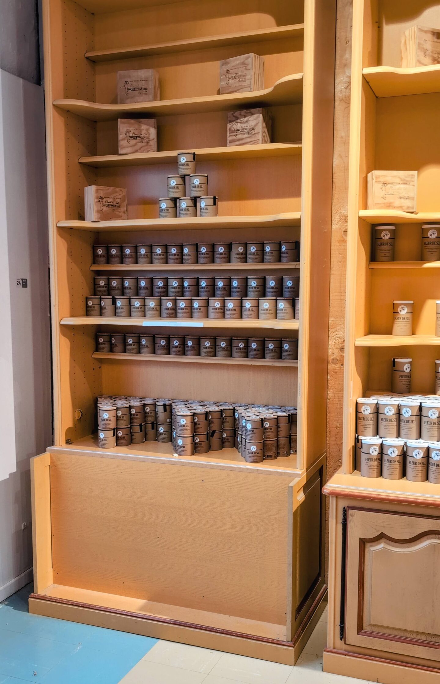 There were salts for cooking, bathing, scrubbing, and even for display. Rows of jars and packetslined the shelves, each filled with a different variation: fine fleur de sel, large cooking crystals, and flavoured blends infused with herbs, spices, and aromatics.