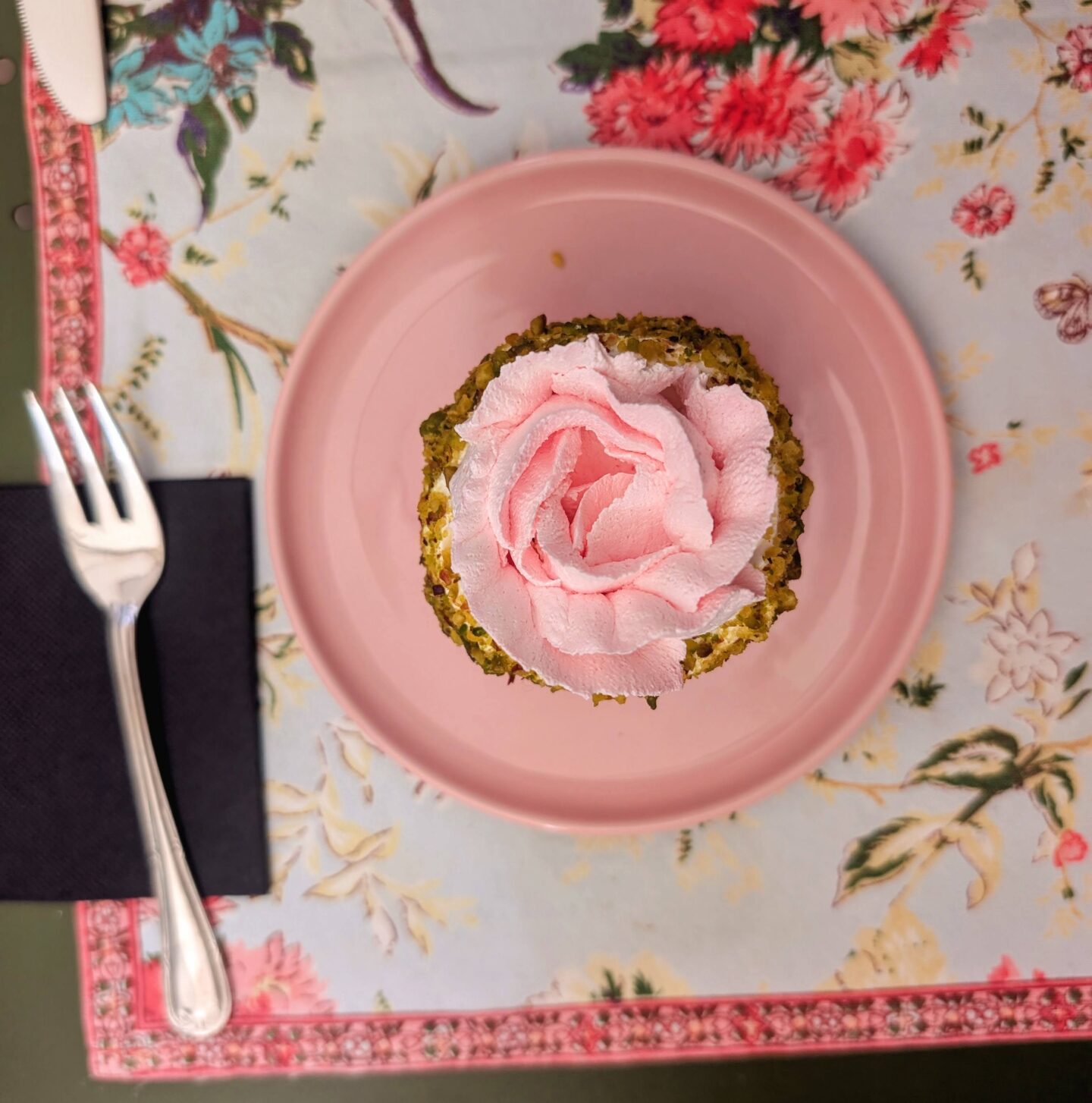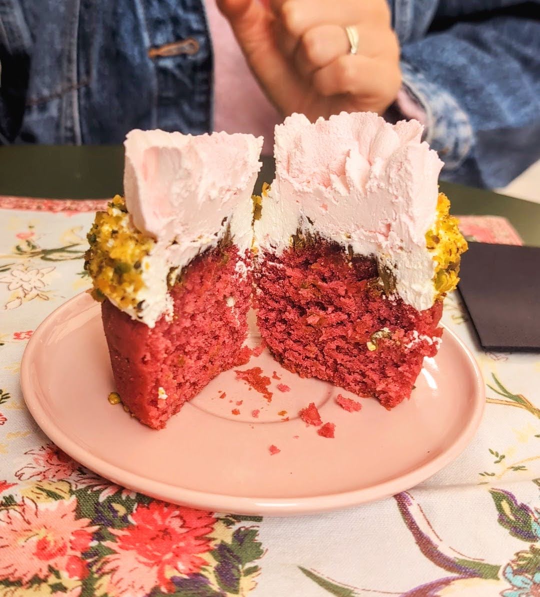 Delicate, balanced, and almost too pretty to eat, the Colette was a true showstopper. Its rose-shaped design sat beautifully atop a light, vibrant-pink sponge, encircled by a ring of finely ground pistachio. The flavours were just as graceful as the presentation – soft rose, nutty pistachio, and a gentle hint of raspberry layered together with cream above a raspberry jelly in perfect harmony. Light, floral, and not overly sweet, it would be the perfect companion to a pot of herbal tea. The kind of cake you’d imagine being served in a sunlit drawing room while reading Austen – elegant, refined, and quietly unforgettable.