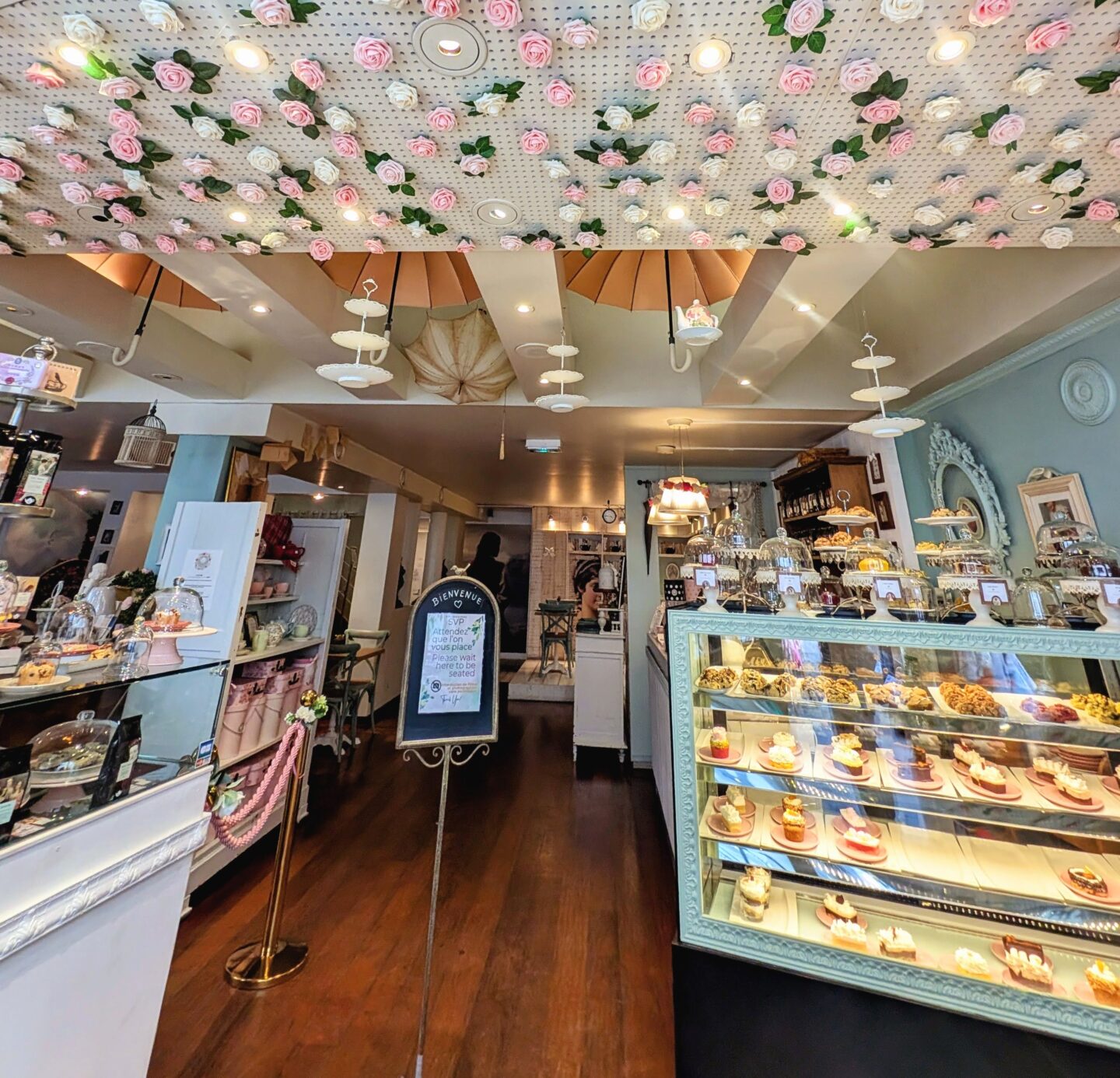As soon as we stepped inside, we were transported. Imagine if Beatrix Potter and Mary Poppins designed a tea room together: floral wallpaper, delicate china, vintage books, and an abundance of charm. This isn’t just a café – it’s a setting. A mood. A whole atmosphere wrapped in comfort and curiosity.
